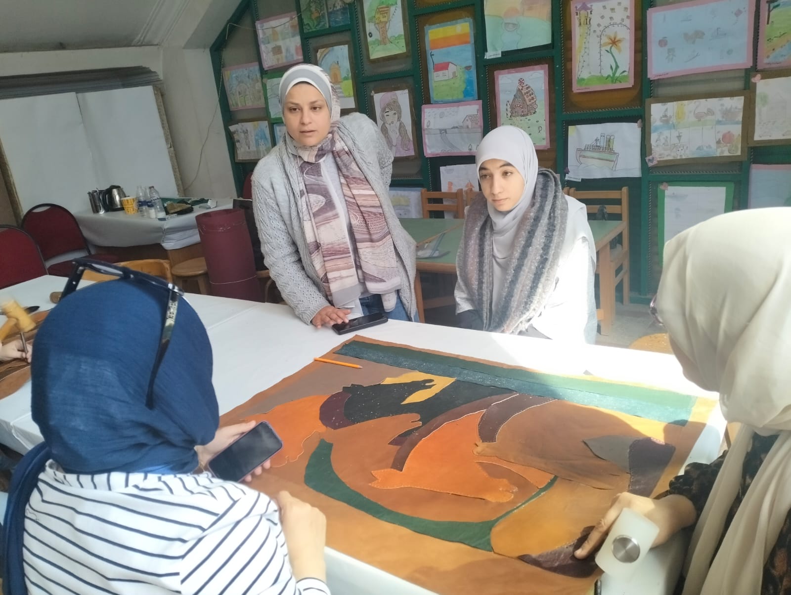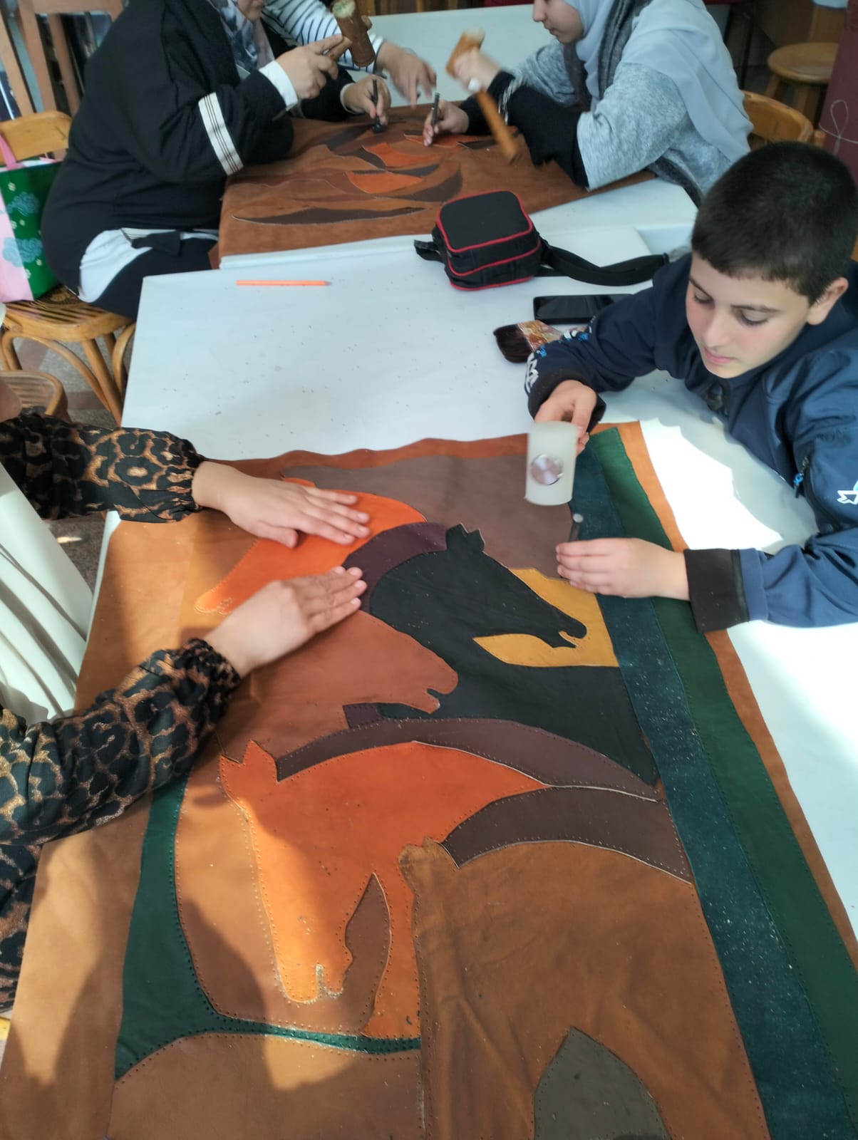وتضمنت الورشة تدريب المشاركين على قص الجلد وتنسيق الألوان وفق التصميمات المزمع تنفيذها، بما يسهم في إخراج منتج نهائي بجودة عالية.