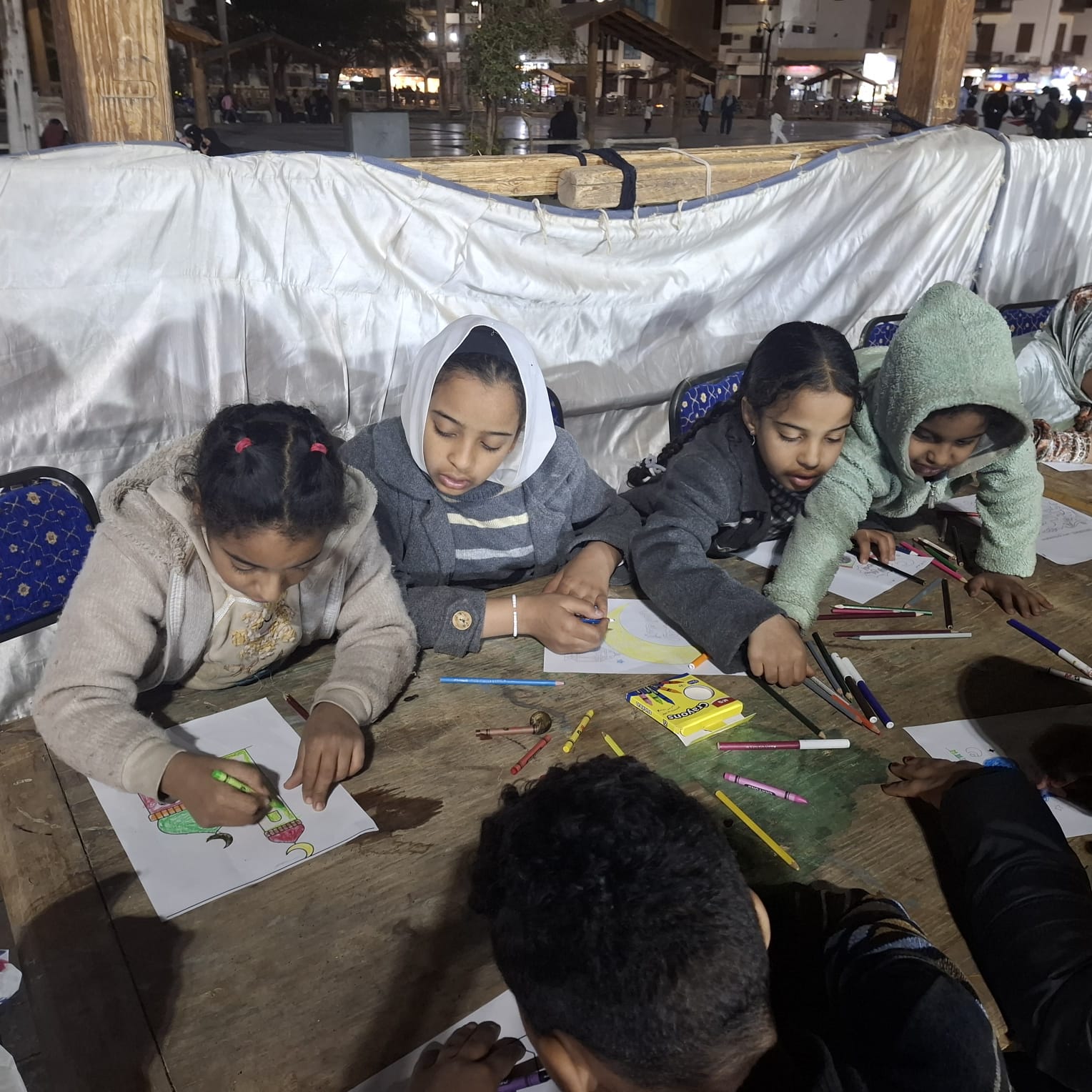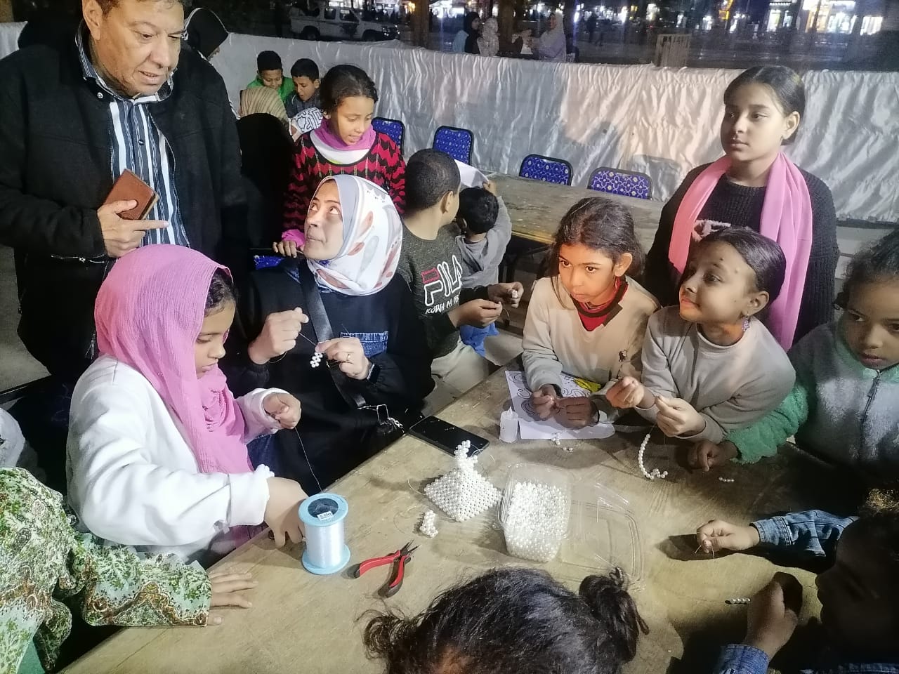 وتضمن اليوم الافتتاحي عددا من الورش الفنية والإبداعية للأطفال، منها ورشة أشغال يدوية لتصميم فانوس رمضان بالخرز للمدربة مشيرة طلعت، وورشة فنون تشكيلية للفنانات منار السيد ونفيسة عبد الرحيم وصفاء حسن، إلى جانب ورشة ألوان مائية للفنانة شيرين فتح الله، وورشة تصميمات من الخشب للفنانة رنا محمد.