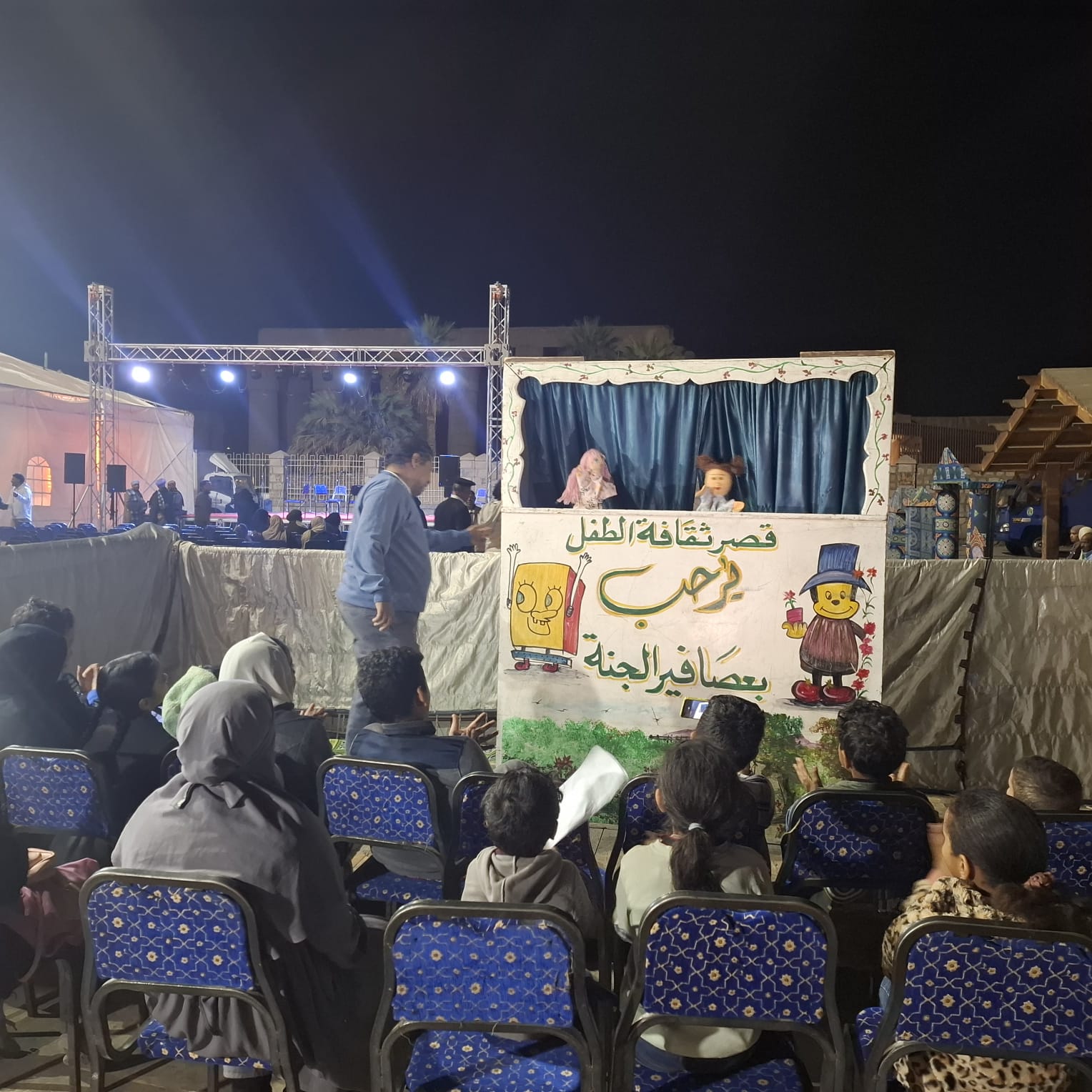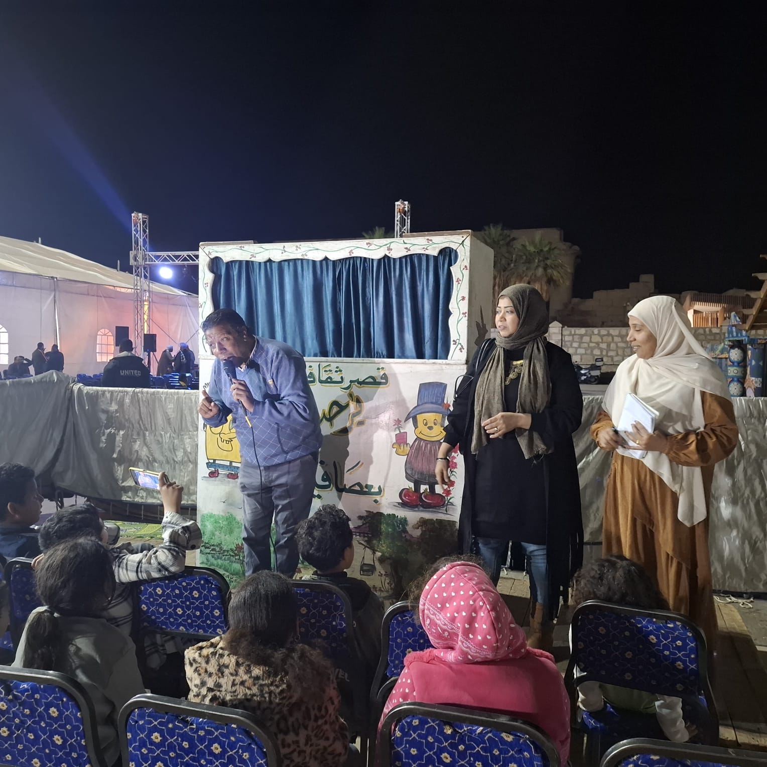 كما شهدت الليلة عرض مسرح عرائس لقصة "فضل الصيام" قدمه الفنانان محمود النجار وسماح مصطفى، أعقبه دوري ثقافي أدارته إيمان صلاح، وسط تفاعل من الأطفال والأسر.