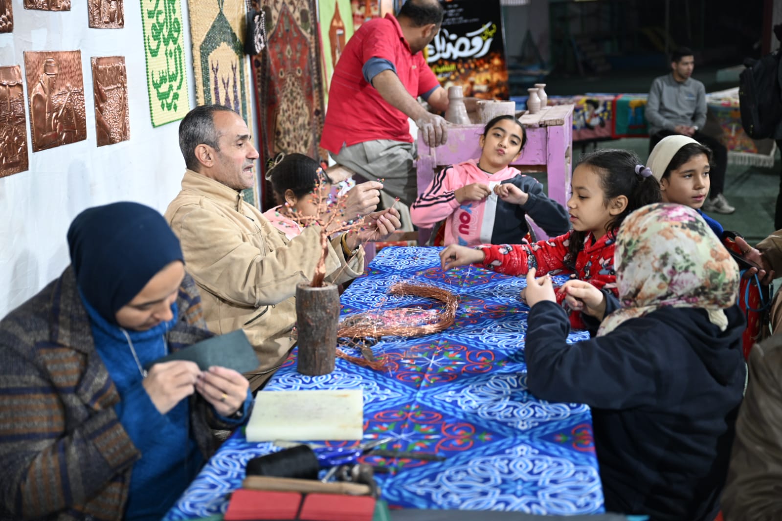 كما شملت الفعاليات تنظيم معرض مركزي يتضمن أشغال الخيامية، الإكسسوارات، المكرمية، حقائب من الخرز، منتجات الكليم السيناوي، الحصير، منتجات الخوص المغربي، سجاد، تابلوهات من الخيش، أشغال قشرة الخشب، ديكوباج، ريزن، كونكريت، رسم على الفخار، تشكيل بالأسلاك، منتجات الجلود، طرق على النحاس، صدف، الخزف، فوانيس من الخرز الملون، بجانب بعض عرائس الماريونت، ولوحات فنية.
