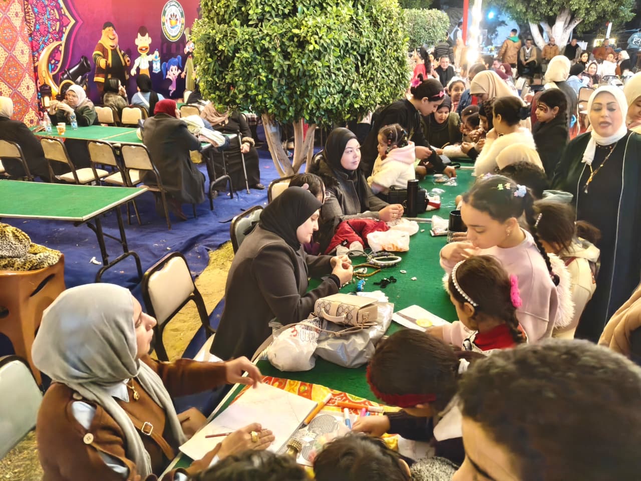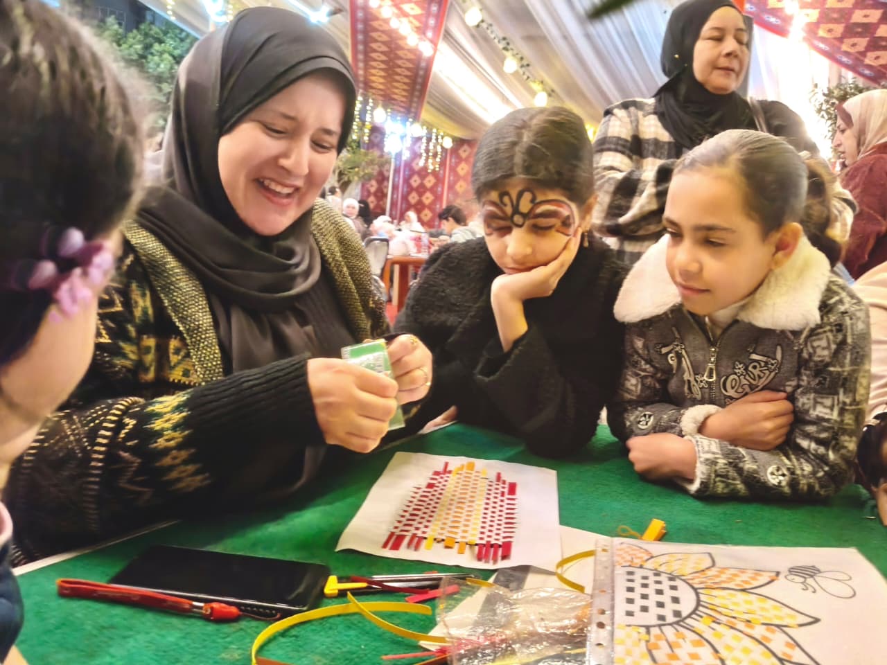 وتواصلت الأنشطة المنفذة بإشراف إقليم القاهرة الكبرى وشمال الصعيد الثقافي برئاسة أحمد درويش، وفرع ثقافة الفيوم برئاسة ياسمين ضياء، من خلال مجموعة من الورش الفنية المتنوعة التي أتاحت للأطفال مساحة للتعبير عن مواهبهم، منها ورشة النسيج الورقي، وورشة تصميم فازة مرصعة بالستراس، وورشة صناعة توك للشعر من اللؤلؤ، إلى جانب فقرة الرسم على الوجوه التي أضفت أجواء من البهجة بين الصغار. وشارك في تنفيذ الورش كل من: نعمة رجب، تهاني أحمد، الدكتورة منار حسين، ندى أحمد، مشيرة الدفناوي، سناء قناوي، وأماني عبد التواب.