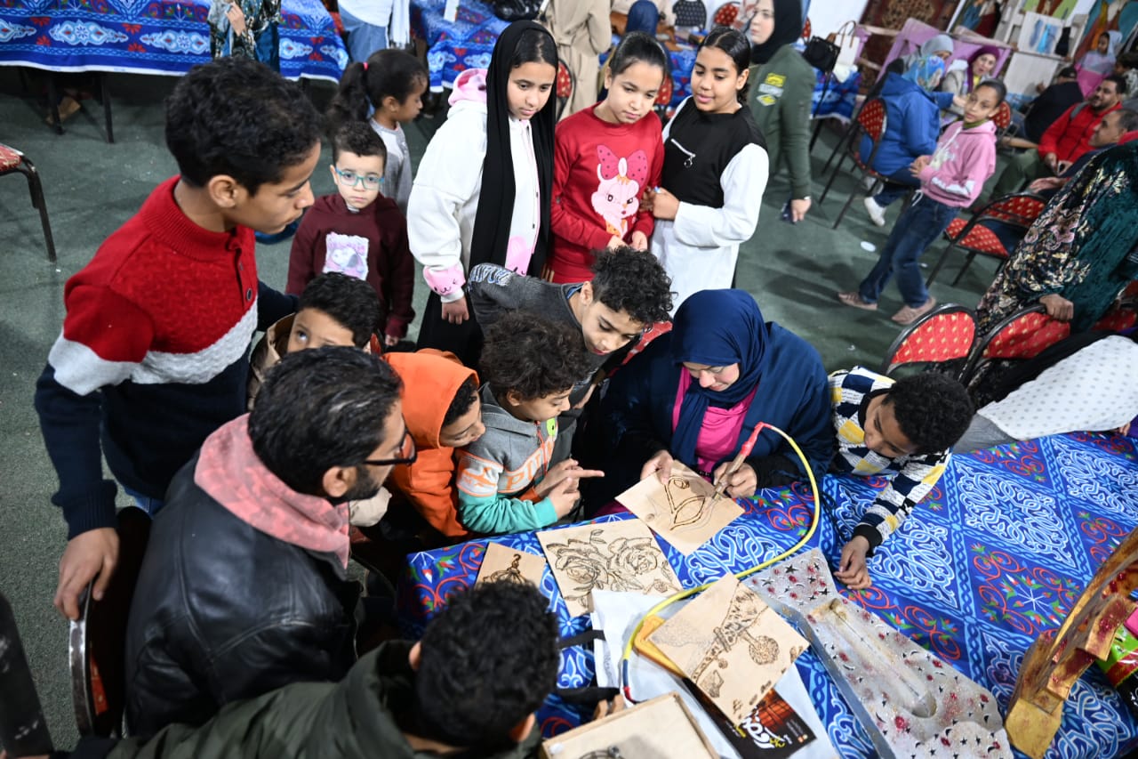 وشهد اليوم استمرار الورش الفنية والتراثية، حيث نفذت الإدارة العامة لثقافة القرية ورشة شيلان من الصوف باستخدام خيط التلي تدريب عزيزة عبد الحميد، وورشة حصير تدريب محمد فوزي، إلى جانب ورشة تطريز تراثي، تدريب إيناس حسين.