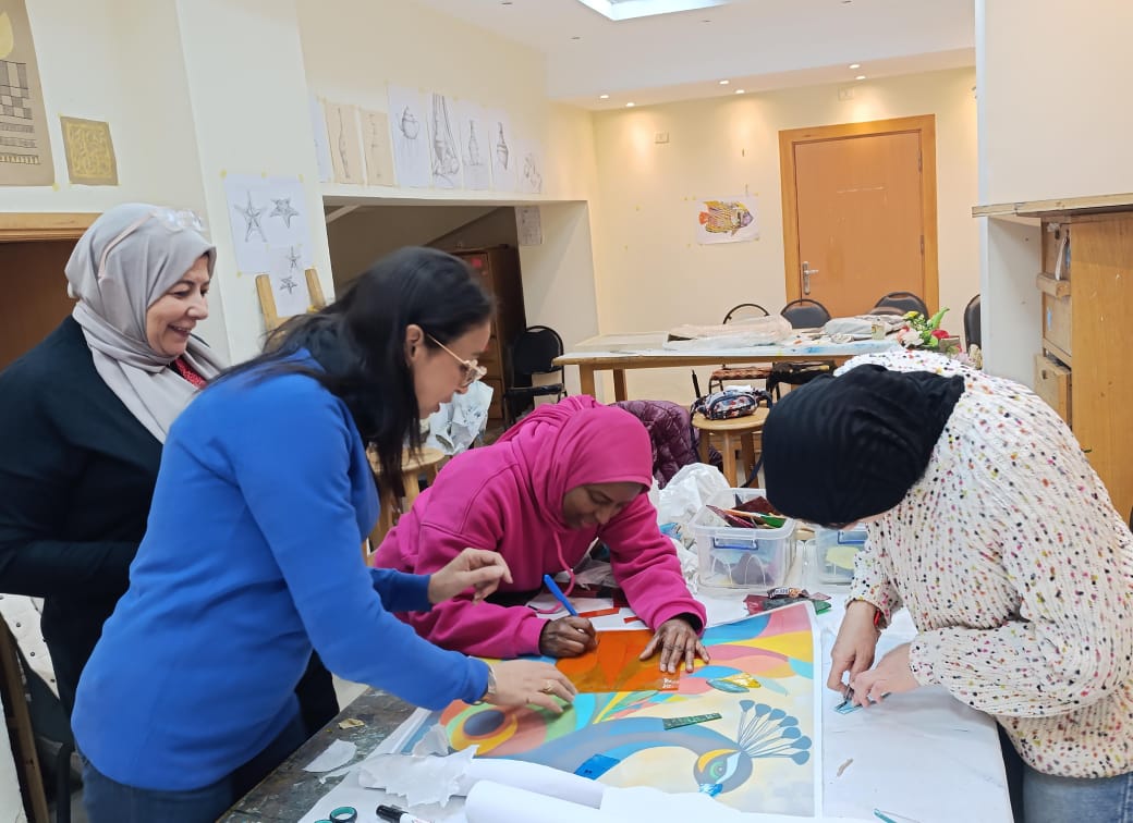 وأضافت أن اليوم الأول شمل تدريب على كيفية نقل التصميم، وطرق القص الصحيحة للقطع الزجاجية، للبدء في تنفيذ تابلوه على شكل طاووس، مع توضيح أسس تنسيق الألوان لإخراج العمل الفني بصورة إبداعية.