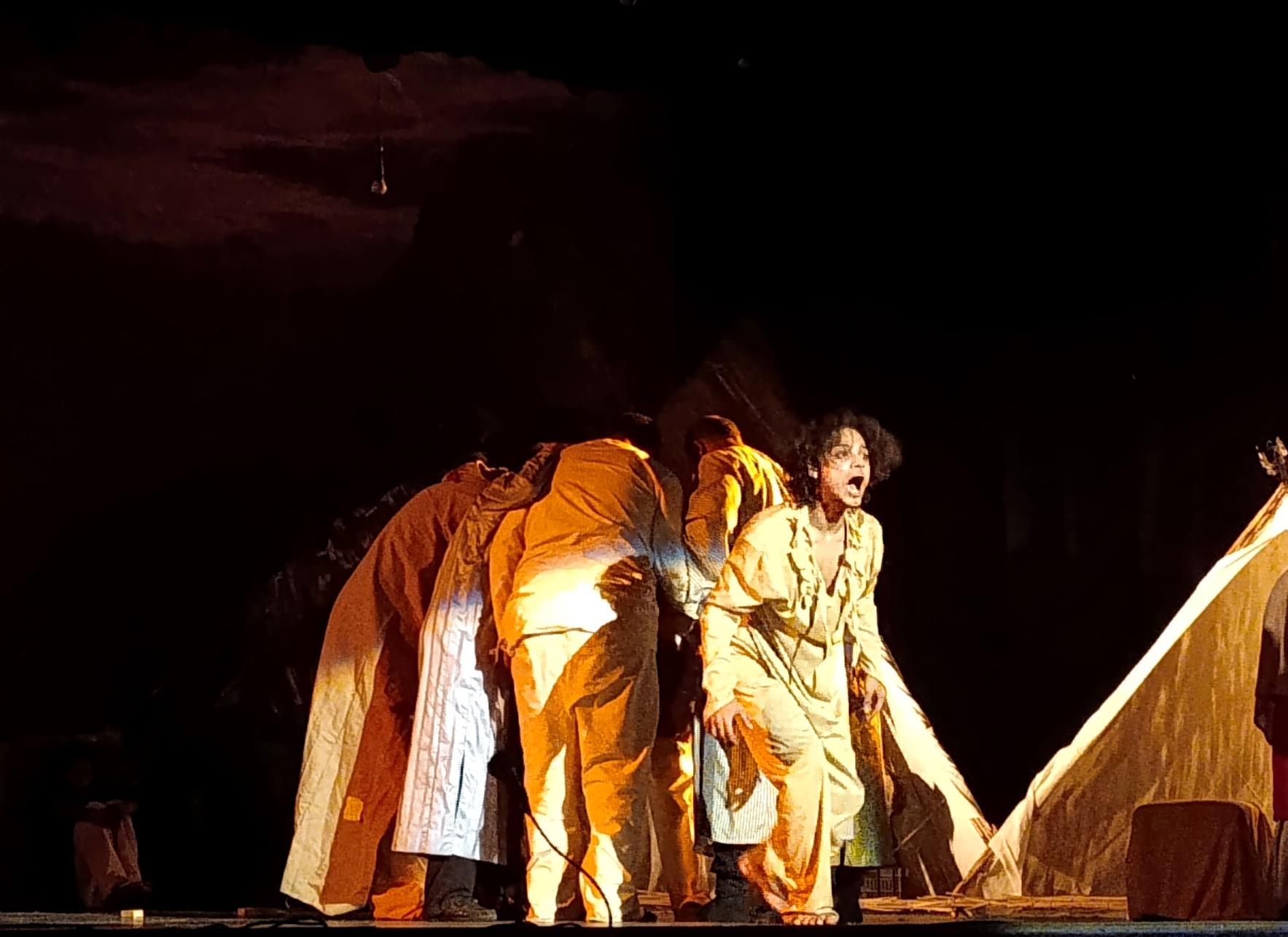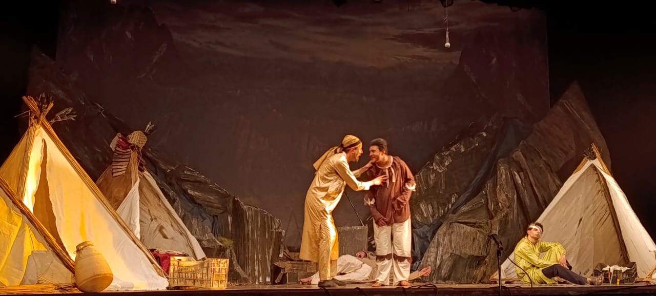العرض تأليف الكاتب محمود جمال الحديني، وإخراج إبراهيم أحمد، وتدور أحداثه حول طفل يولد بلا لسان، يعاني صعوبة في التعبير، ويواجه تحديات قاسية عند اندماجه في المجتمع.