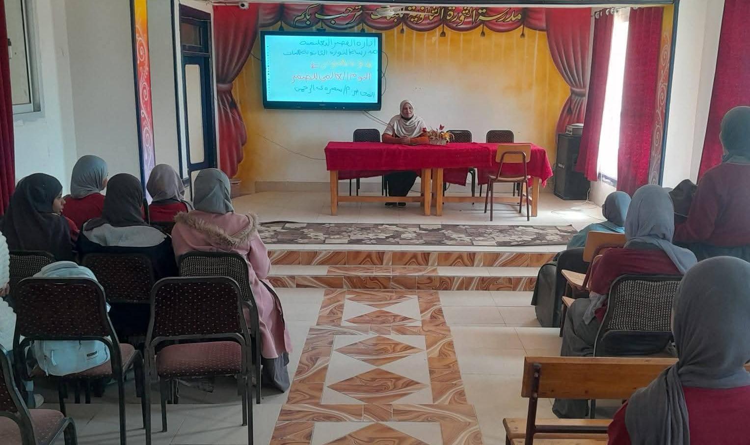 كما أقيمت محاضرة ضمن نشاط المكتبات بمناسبة اليوم العالمي للضمير، أوضحت خلالها سميرة أحمد، مديرة مدرسة الثورة الثانوية، دور الضمير في حياة الفرد والمجتمع، وأثر ذلك في الإخلاص في العمل، والصدق في القول، والأمانة في التعامل.