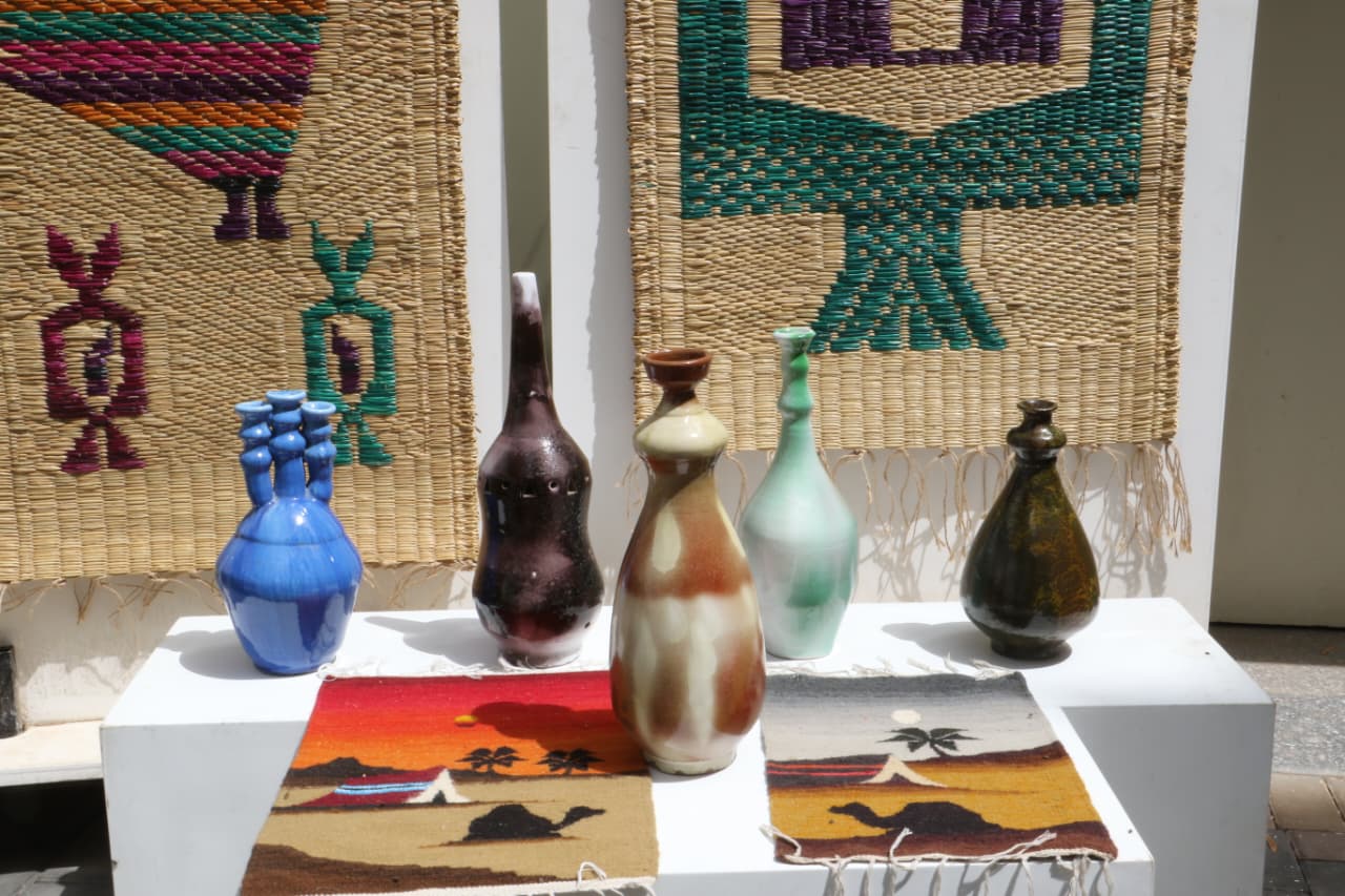 وشهدت الفعاليات كذلك افتتاح معرض الحرف التراثية بمشاركة مختلف إدارات الإدارة المركزية للدراسات والبحوث، حيث قدمت ثقافة المرأة منتجات الخيامية والتطريز السيناوي والثوب الفلاحي، بينما عرضت ثقافة الشباب والعمال مشغولات النحاس والصدف والخيامية. وشاركت القصور المتخصصة بسجاد وخزف وحصير، فيما قدمت إدارة القرية منتجات الخوص والحصير والكليم والسجاد والخيامية، إلى جانب مشاركات ثقافة الطفل من خلال نتاج ورش الحكي والألعاب الشعبية ومنتجات الصلصال والفخار والرسوم، إضافة إلى مشاركة أطلس المأثورات الشعبية بورش الحكي والألعاب الشعبية.