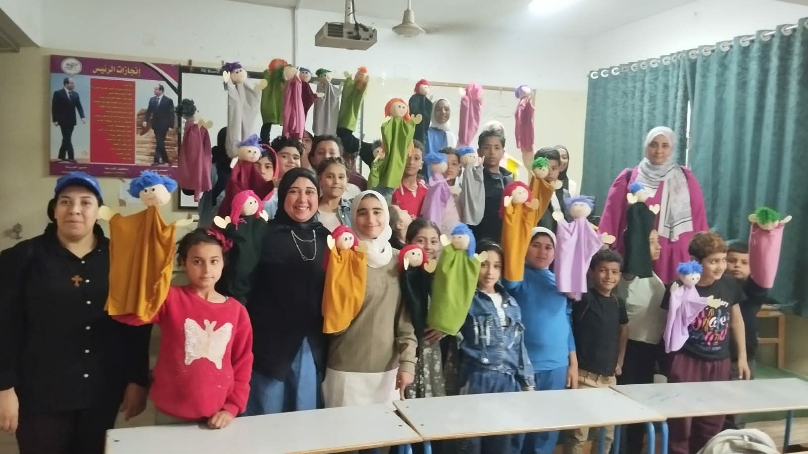 كما شهدت الفعاليات ورشة تصميم عرائس قفازية، تنفيذ تريزا فريد وزينب عطية، تلاها تدريبا عمليا أوضح خلاله الفنان مهدي السيد خطوات التحريك بأسلوب مبسط.