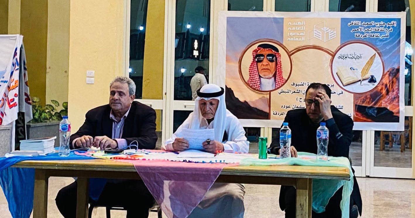 وتواصلت الفعاليات بمناقشة نقدية ثرية، قدم خلالها الشاعران فرج الضوي وجمال بدوي، دراسة تحليلية حول إشكاليات الشعر النبطي بين الأصالة والتجديد، مؤكدين أن النص يحقق توازنا بين التأثر بالكلاسيكية وبناء صوت خاص، مع انفتاحه على القضايا المعاصرة مع الحفاظ على جذوره البدوية.
